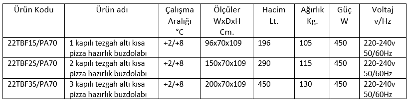 22TBF3S-PA70 3 DOOR LOW MOUNTED PIZZA PREPARATION CABINET
